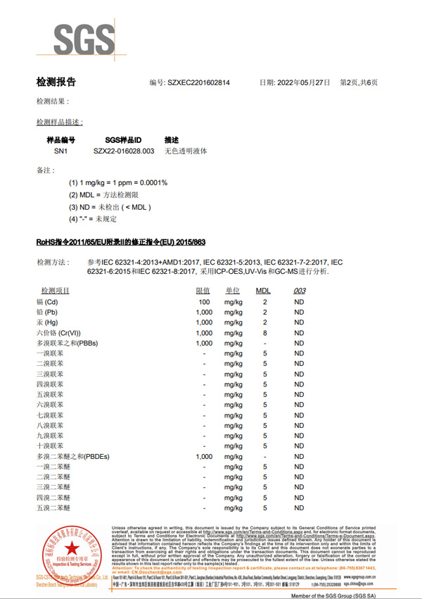 切削液 欧盟ROSH认证